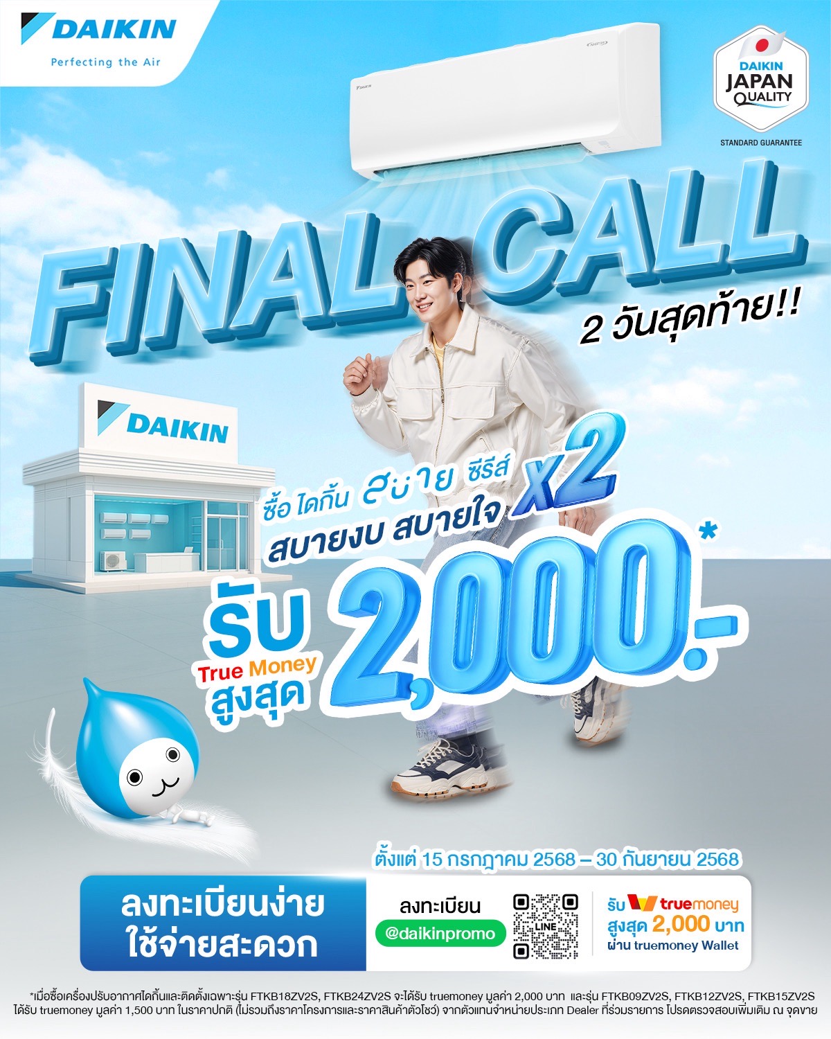 | 9,000 BTU | 12 - 15 ตร.ม. | ห้องนอนเล็ก, ห้องทำงานส่วนตัว |
